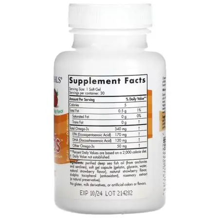 Cada softgel contiene una mezcla de ácidos grasos omega-3, ‍incluyendo EPA y DHA, que son esenciales para el desarrollo del‍ cerebro, la visión y el sistema nervioso de los niños. También contiene vitamina D3, que ayuda a mantener huesos y dientes fuertes y ⁢saludables.